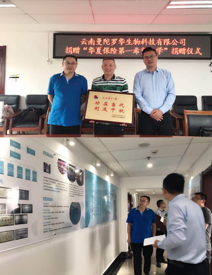 近年来,华夏保险从总公司到分公司,都全力深入贯彻落实习近平总书记扶贫开发重要战略思想,秉承“爱老慈幼”公益重点,发起了多项公益扶贫活动,向社会贡献正能量,形成了巨大的公益合力。近年来,华夏保险云南分公司开展了针对“孤、困、贫、难”的“抗战老兵”及失独老人的精准扶贫活动;开展了寻甸多姑小学、昭通巧家营上小学、楚雄武定老木坝村及哪吐村等多项启智扶贫活动;开展了 “华夏保险· 一碗红糖养人, 一份关爱暖心”产业扶贫活动。此次云南华夏保险第一希望小学的捐赠便是来源于巧家小碗红糖公益项目。