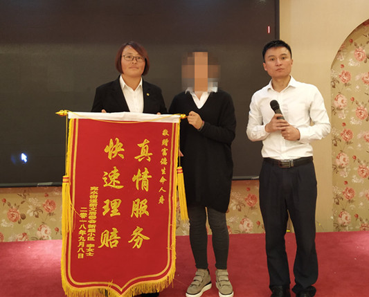 9月7日,公司理赔专员到李女士家进行慰问并送达理赔决定通知书,以此同时10.34万元理赔款支付到李女士个人账户。公司的贴心服务,得到李女士一家的高度认可,并送上 “快速理赔、真情服务”的锦旗以示感谢。