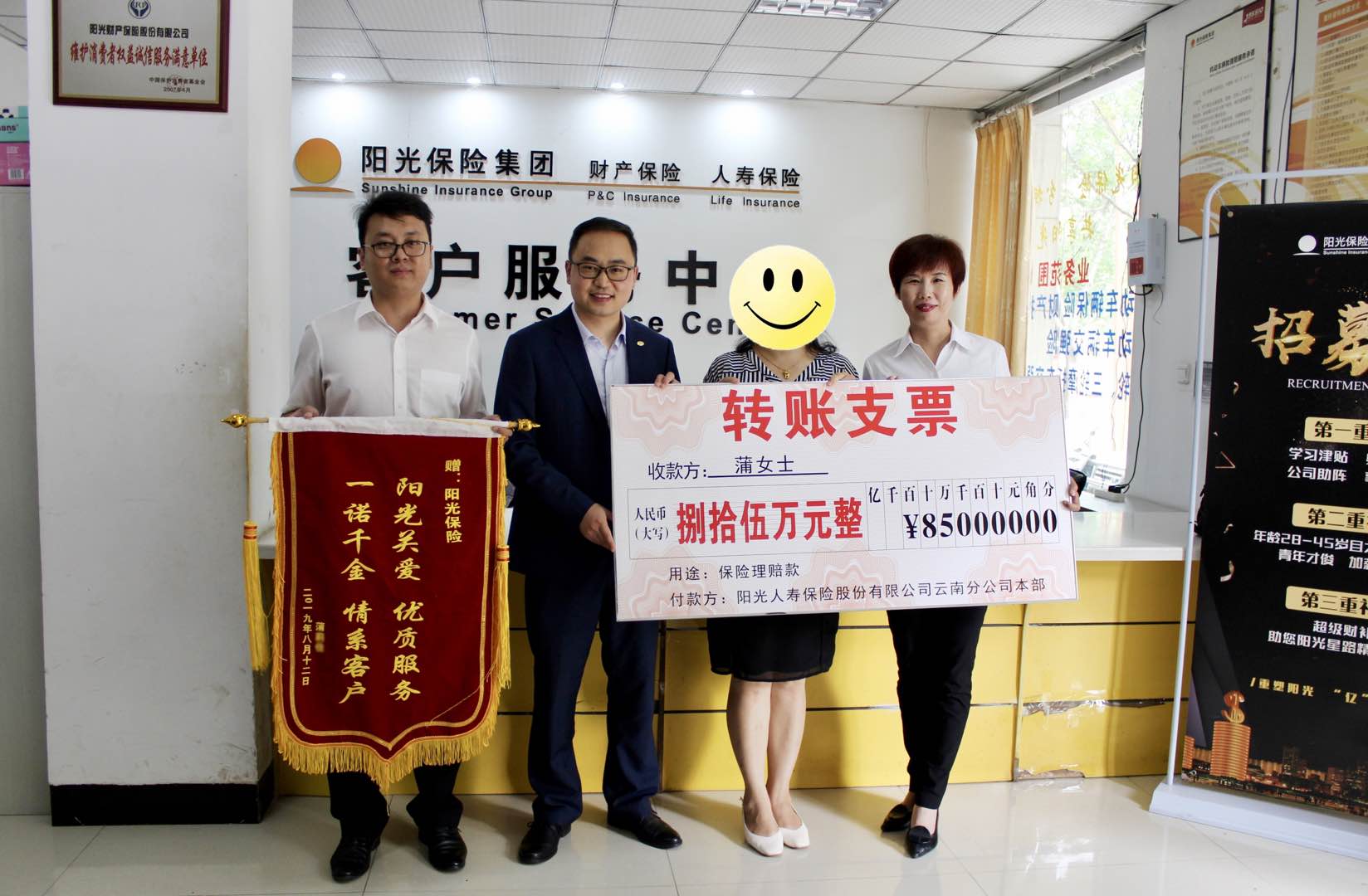 阳光关爱 优质服务 ——阳光人寿云南分公司高效理赔85万
