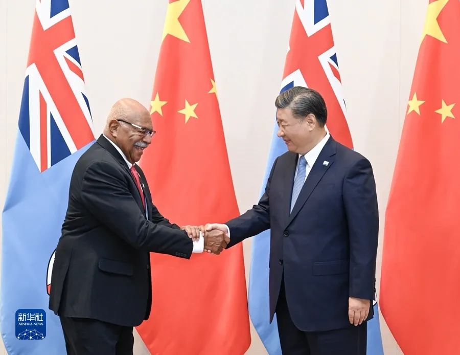 当地时间11月16日上午,国家主席习近平在旧金山会见斐济总理兰布卡。