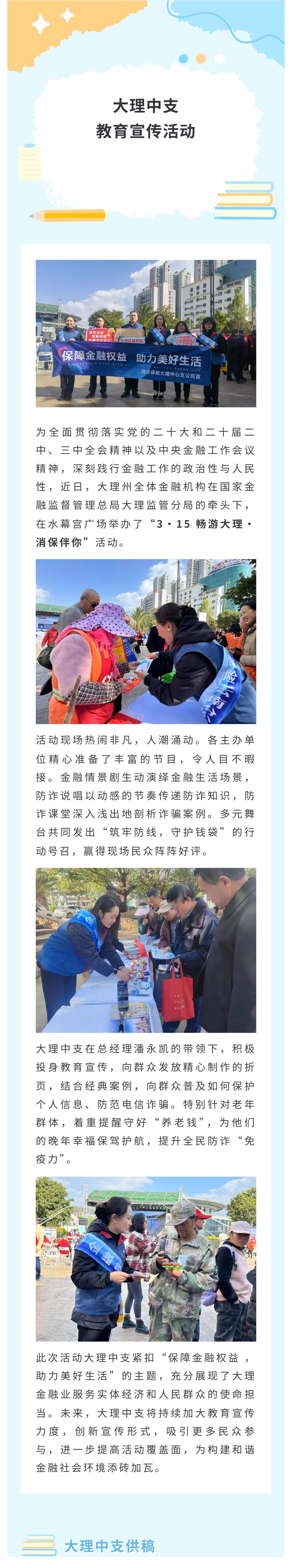 瑞众保险大理中支开展“3·15 畅游大理·消保伴你”活动
