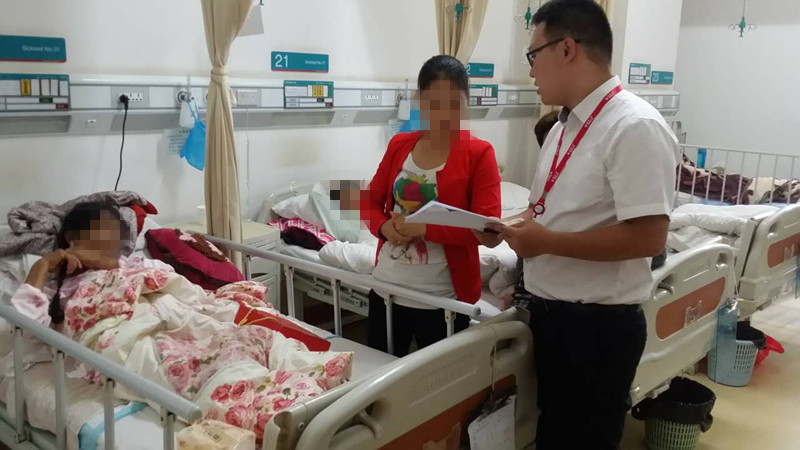 接到报案后,泰康云南分公司理赔人员电话回访了解详细的病情信息,同时立刻展开了康乃馨探视+理赔服务。