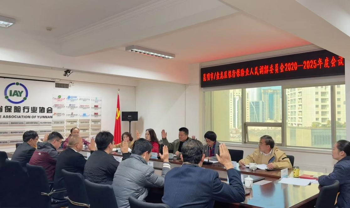 2025年12月4日上午,昆明市/盘龙区银行保险业人民调解委员会年度会议在云南省保险行业协会召开。昆明市/盘龙区银行保险业人民调解委员会9名委员参加会议,5名相关人员列席会议。