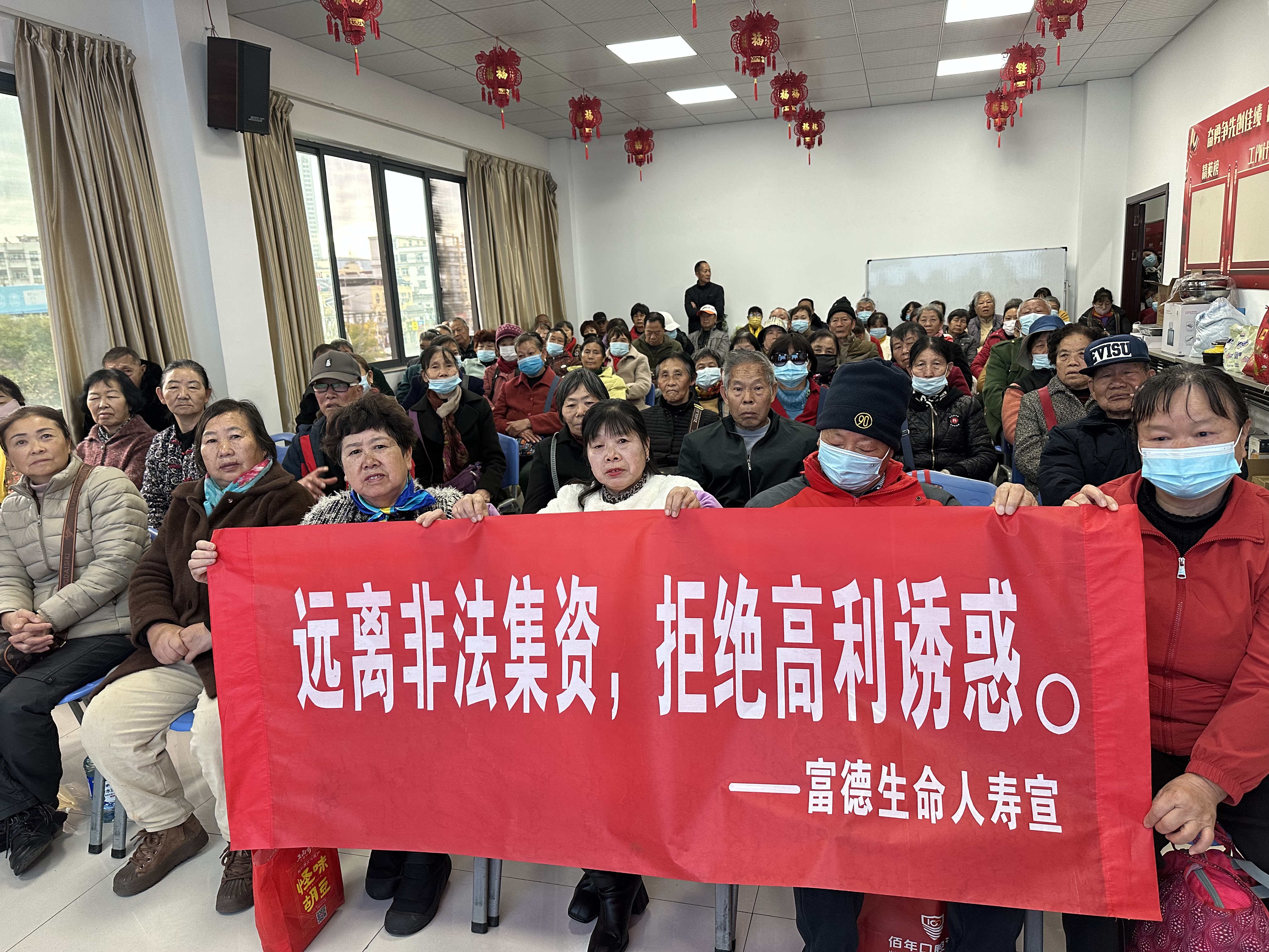 岁末年初是各类非法金融活动的高发期,为切实提升老年人金融风险防范意识,富德生命人寿玉溪中心支公司积极响应国家金融监督管理要求,聚焦老年群体,深入开展防范非法集资及养老诈骗专题宣传教育活动,全力守护老年人的“养老钱”。