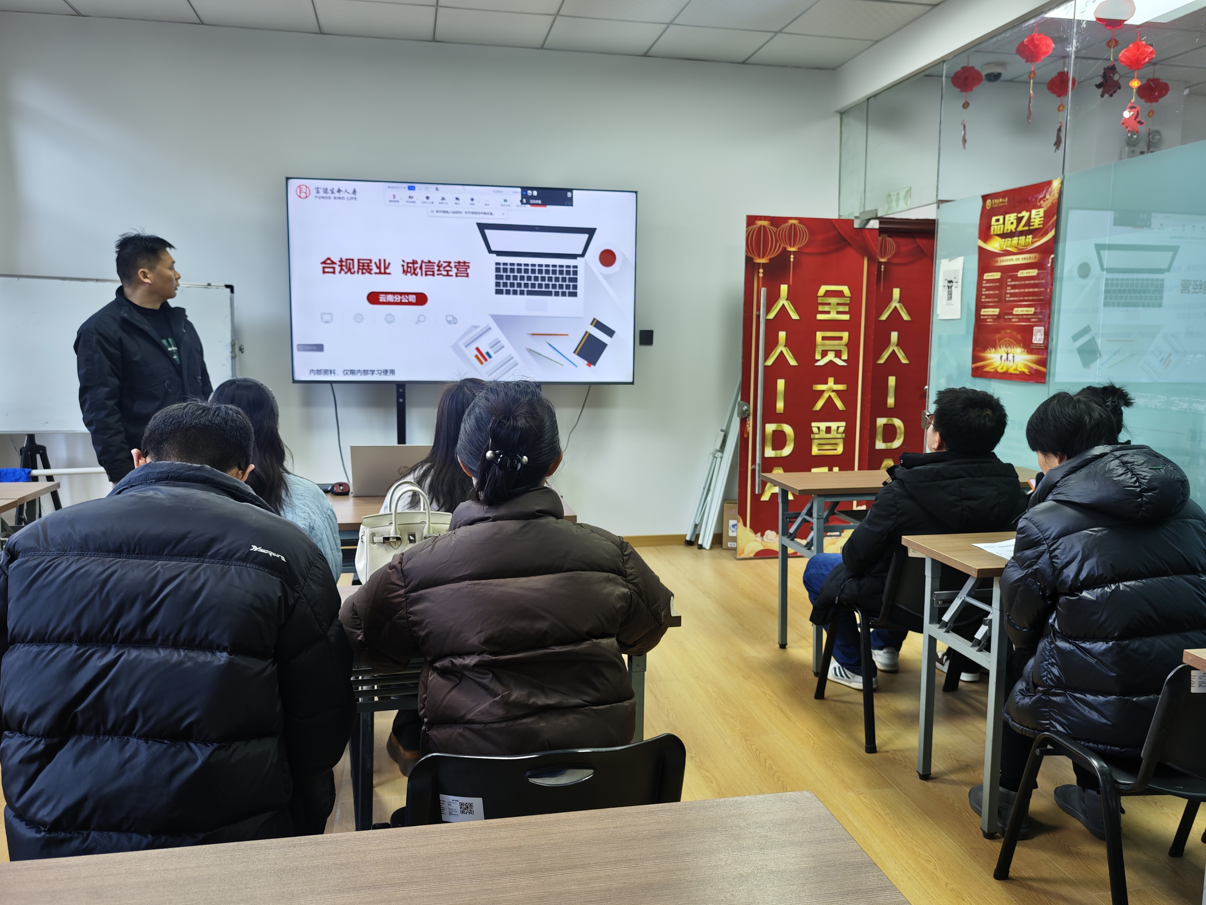 为进一步强化团队合规经营意识,筑牢风险防控底线,富德生命人寿楚雄中支银保部于2026年1月20日上午组织开展“合规展业 诚信经营”专题培训,银保全体业务及内勤人员参加了本次学习。