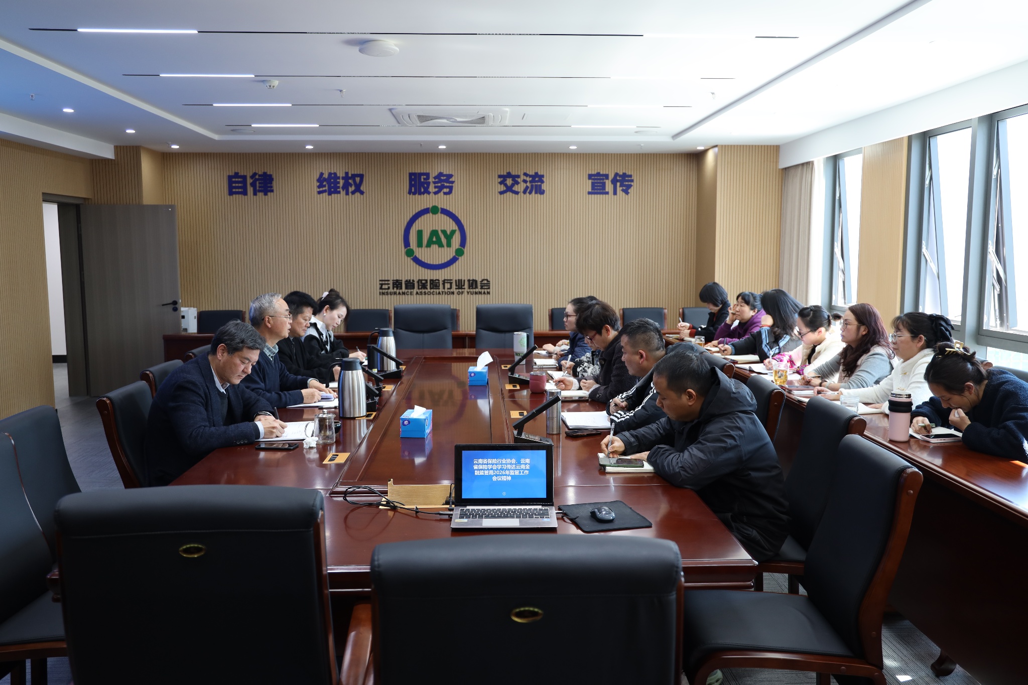 1月27日下午,云南省保险行业协会、保险学会召开全体员工大会,传达学习国家金融监督管理总局云南监管局 2026 年监管工作会议及云南监管局系统 2026 年全面从严治党工作会议精神,研究部署贯彻落实举措。