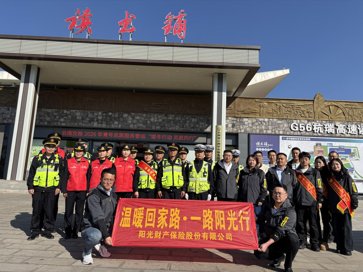 2026年春节期间,阳光财险云南省分公司及下辖楚雄、昆明、临沧、文山、版纳、德宏、玉溪、曲靖、普洱等9家中心支公司同步行动,纷纷联动各地交警、交通执法等部门,在全省多个高速路口、交通枢纽设立“温暖回家路”爱心服务站,开展“一路阳光行”新春暖心护航系列活动,为返乡及出游司乘送上暖心物资与专业服务,用实际行动践行企业社会责任,传递保险行业的“爱与责任”。