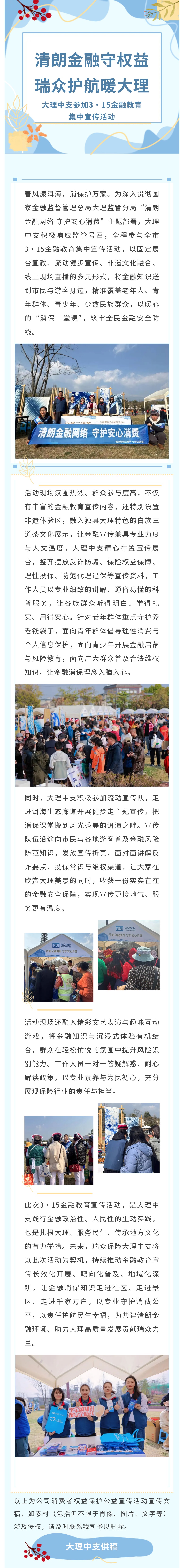 3·15消保活动丨瑞众保险大理中支参加全市3·15金融教育集中宣传活动