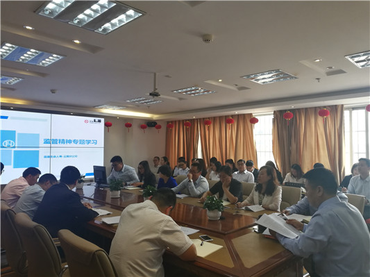 8月30日下午,分公司办公室组织本部门员工在六楼小会议室学习中国保监会副主席陈文辉、云南保监局党委书记、局长曹光中在学习贯彻全国金融工作会议精神专题培训班上的讲话精神。
