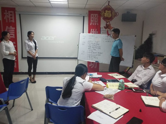 会议期间,王瑞亮经理带领全体人员分组进行网沙邀约演练,并针对流量客户、老客户以及网点网沙制定合理计划,进行情景假设和演练通关,为业务突破、目标达成树立信心。同时,通过情景演练不断增强邀约、促成的应变能力、提升团队建设和个人综合素质。