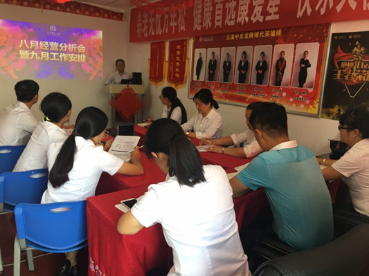 8月31日下午,玉溪中支银保部在职场召开八月经营分析会暨九月工作安排会议,中支银保部全体内外勤员工参加了会议。