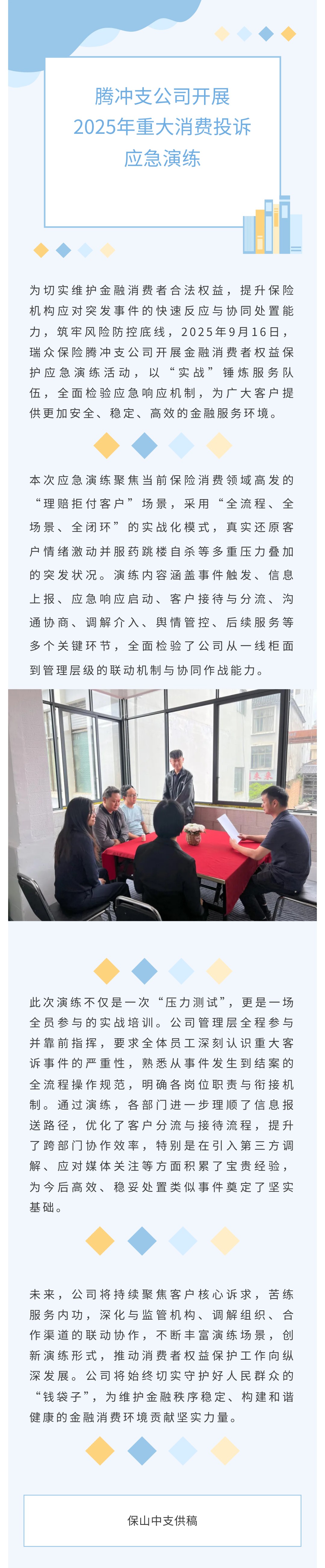 瑞众保险腾冲支公司开展2025年重大消费投诉应急演练