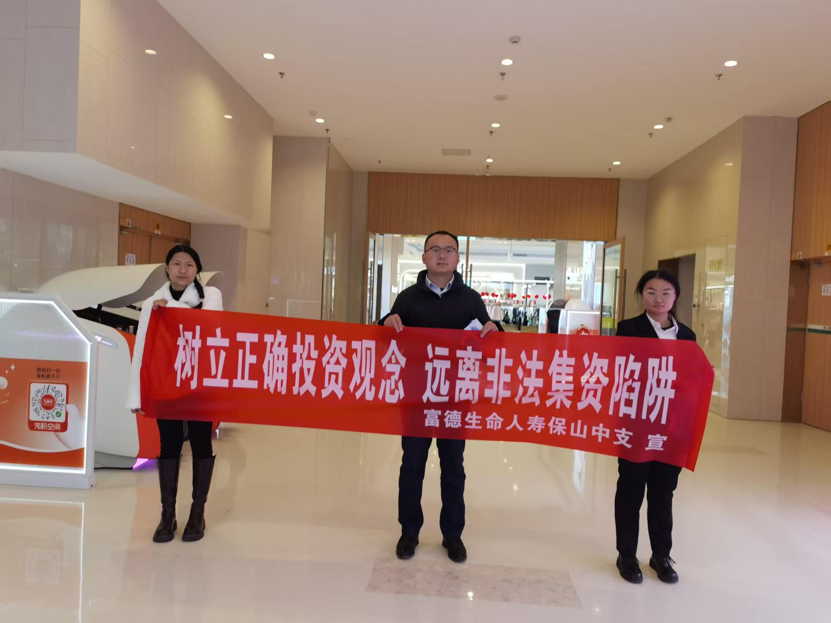 为提高社会公众对金融基础知识的了解,加强对非法金融陷阱的识别和防范能力,2026年1月26日,富德生命人寿保山中心支公司组织宣传员到保山吾悦广场集中开展“树立正确投资观念 远离非法集资陷阱”的防范非法金融宣传活动。
