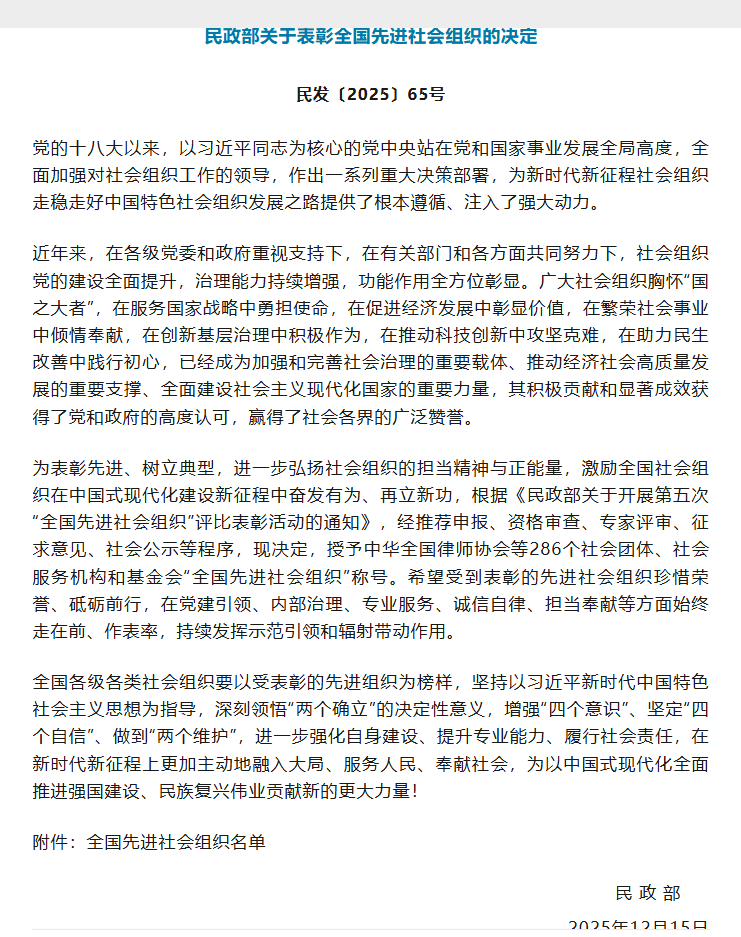 近日,民政部印发《关于表彰全国先进社会组织的决定》(民发〔2025〕65号),经推荐申报、资格审查、专家评审、征求意见、社会公示等程序,云南省保险行业协会凭借以党建引领协会、服务行业大局、保障社会民生、行业规范运行等方面的突出成效和广泛的社会影响力成功入围,荣膺“全国先进社会组织”称号。这是继连续两届获评“5A级社会组织”、荣获“服务云南高质量发展重点行业协会商会”之后,协会获得的国家级殊荣。本次评选,全国地方性保险行业协会仅两家获评,充分体现了国家部委对云南保险业在党建引领、行业治理、民生服务、社会责任等方面工作的认可,更是云南保险业践行“国之大者”、服务地方经济社会高质量发展的实践成果。