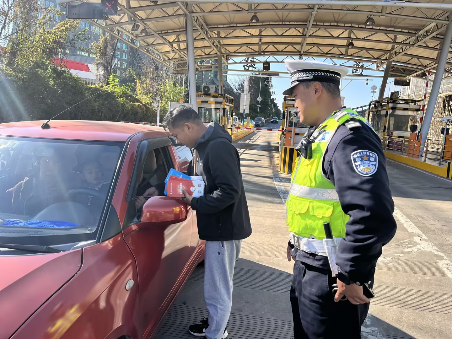 在玉溪,阳光财险玉溪中心支公司志愿者配合执勤交警,对过往车辆驾乘人员开展交通安全、非法集资风险提示及消费者权益保护宣传,通过发放折页、现场答疑、口头提示等方式,为过往车辆及出行人员提供暖心服务。