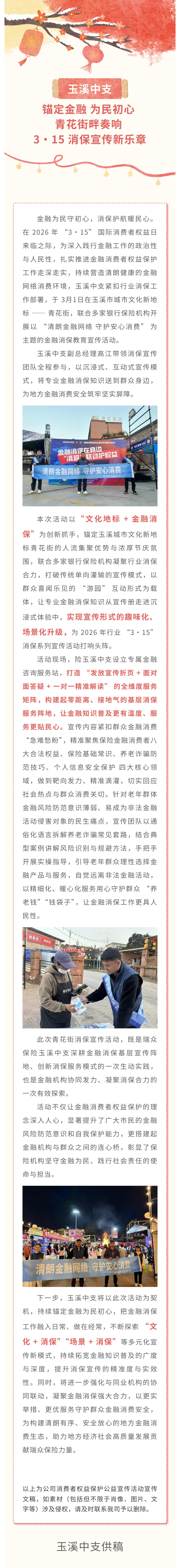 3·15消保活动 | 瑞众保险玉溪中支:锚定金融为民初心 青花街畔奏响 3・15 消保宣传新乐章