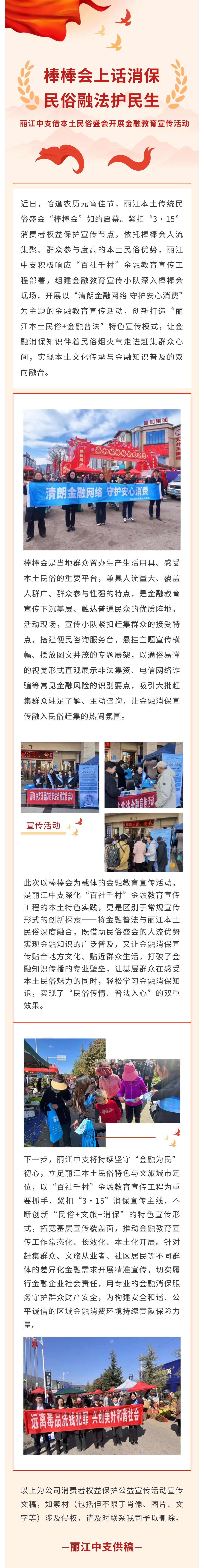 3·15百社千村 | 瑞众保险丽江中支开展“棒棒会上话消保 民俗融法护民生”主题活动