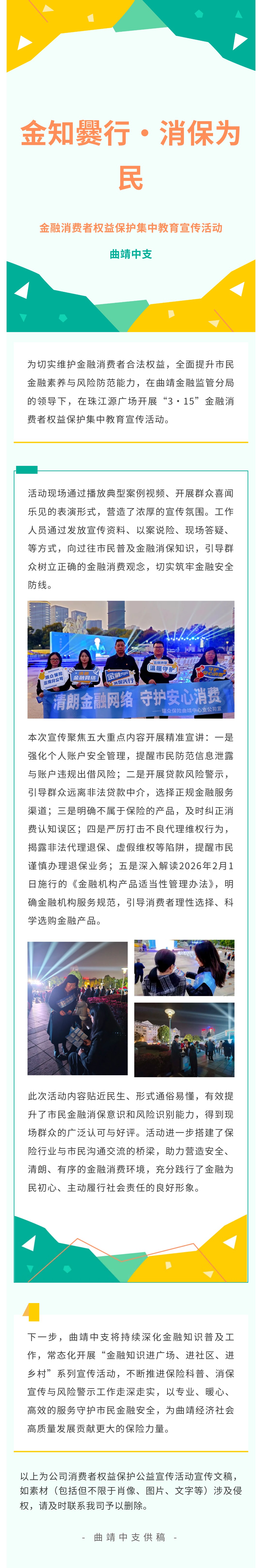 3·15消保活动丨瑞众保险曲靖中支参与3·15金融教育集中宣传活动