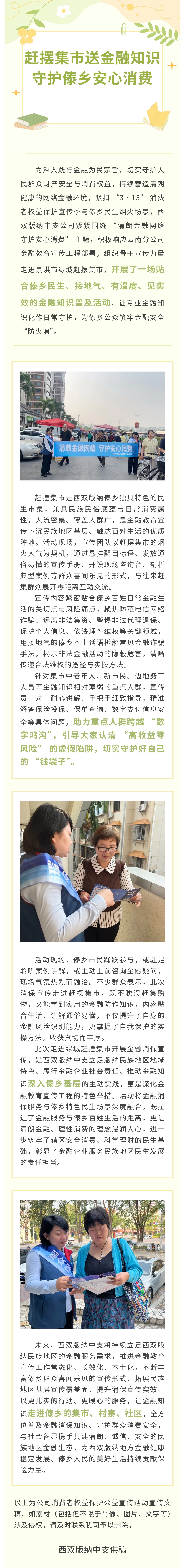 3·15消保活动丨瑞众保险西双版纳中支开展“赶摆集市送金融知识,守护傣乡安心消费”主题活动