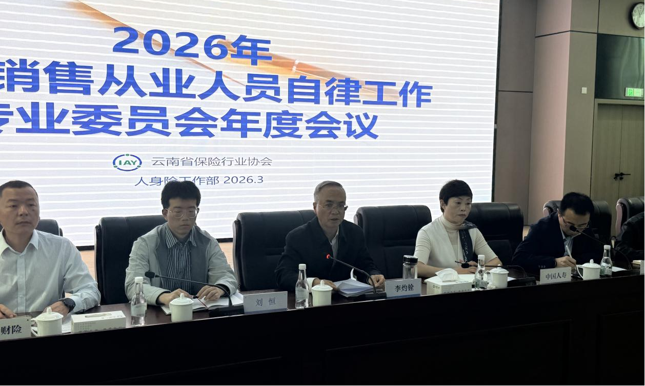 为进一步强化行业自律,切实推动保险机构加强保险销售从业人员管理,云南省保险行业协会(以下简称“省保协”)于3月27日召开“2026年保险销售从业人员自律工作专业委员会年度会议”。云南金融监管局财产保险监管处相关人员,省保协李灼铨专职副会长及各保险省级分公司、会员中介机构相关负责人参加会议。